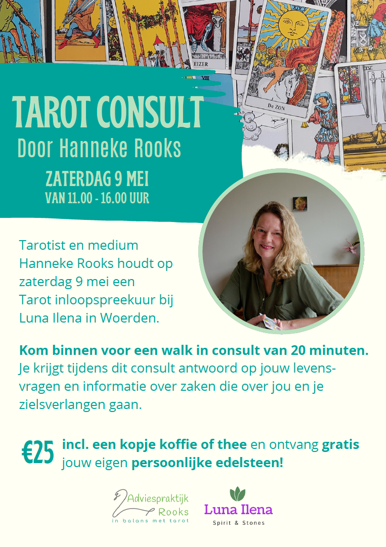 Op zaterdag 9 mei ben je welkom voor een tarot inloopspreekuur in Woerden. Loop binnen voor een persoonlijk consult van 20 minuten, waarin je inzicht krijgt in jouw levensvragen en de thema’s die op dit moment in jouw leven spelen.